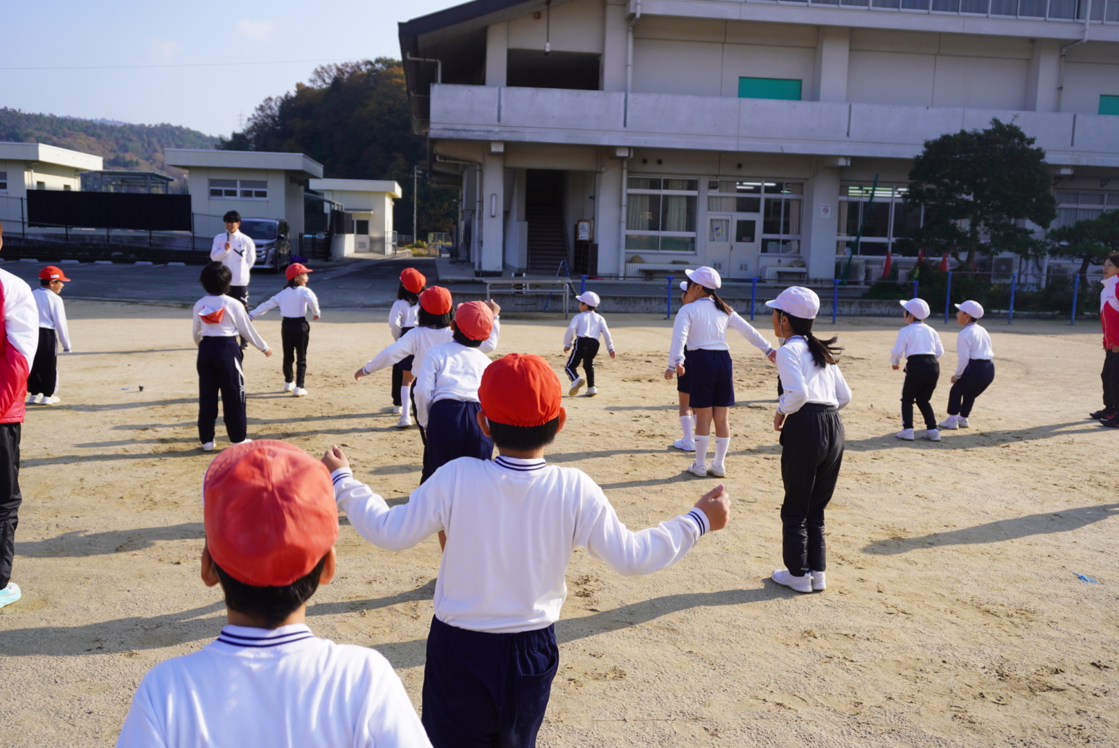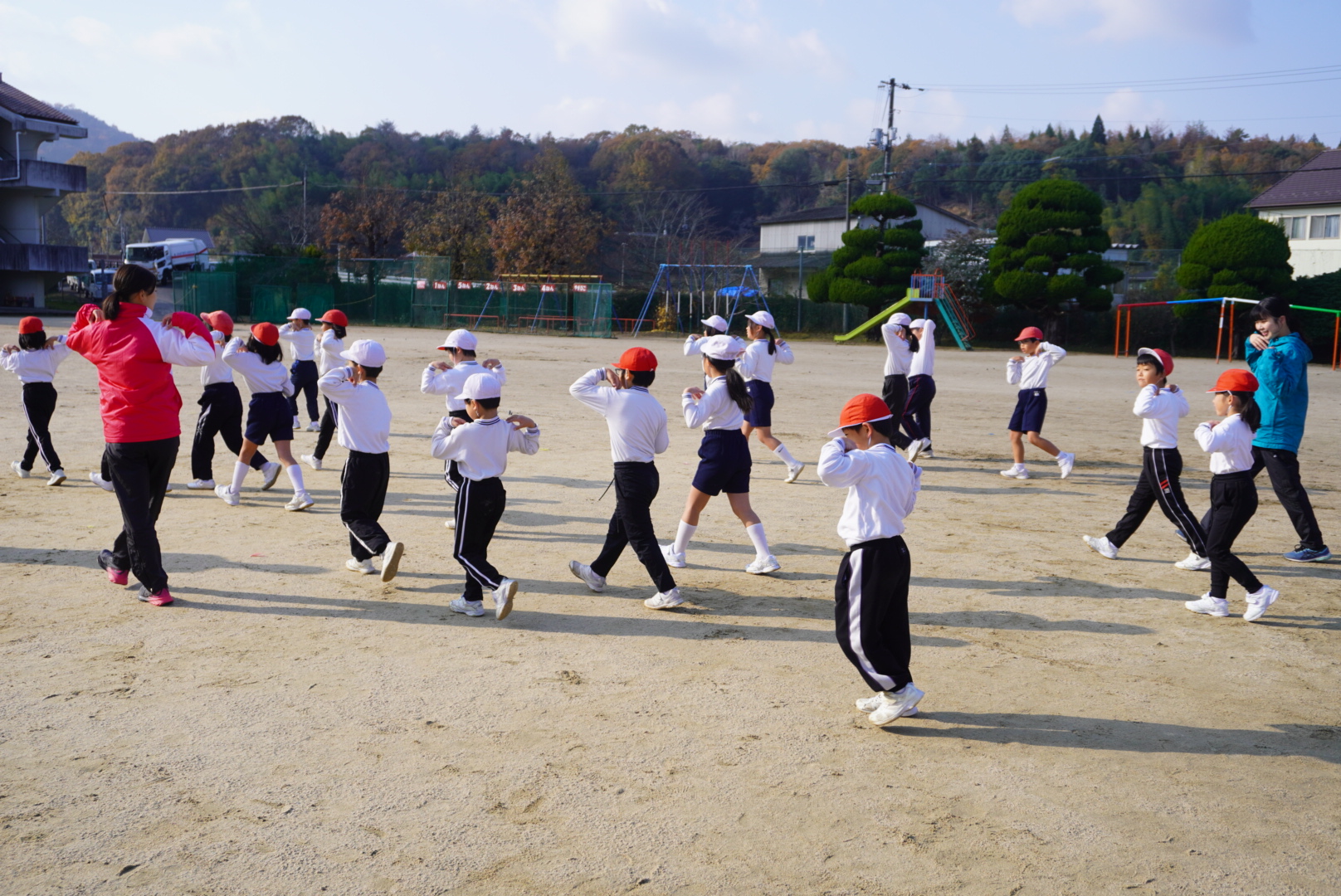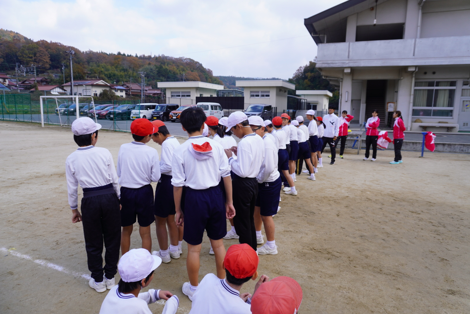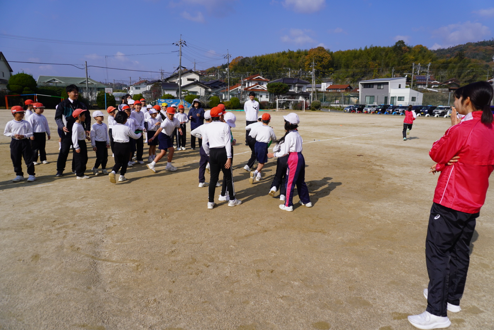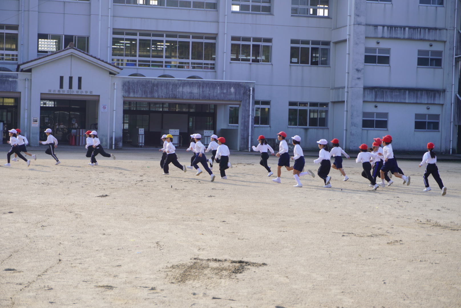 1.2年生、3.4年生、5.6年生に分かれて一緒に走りました。